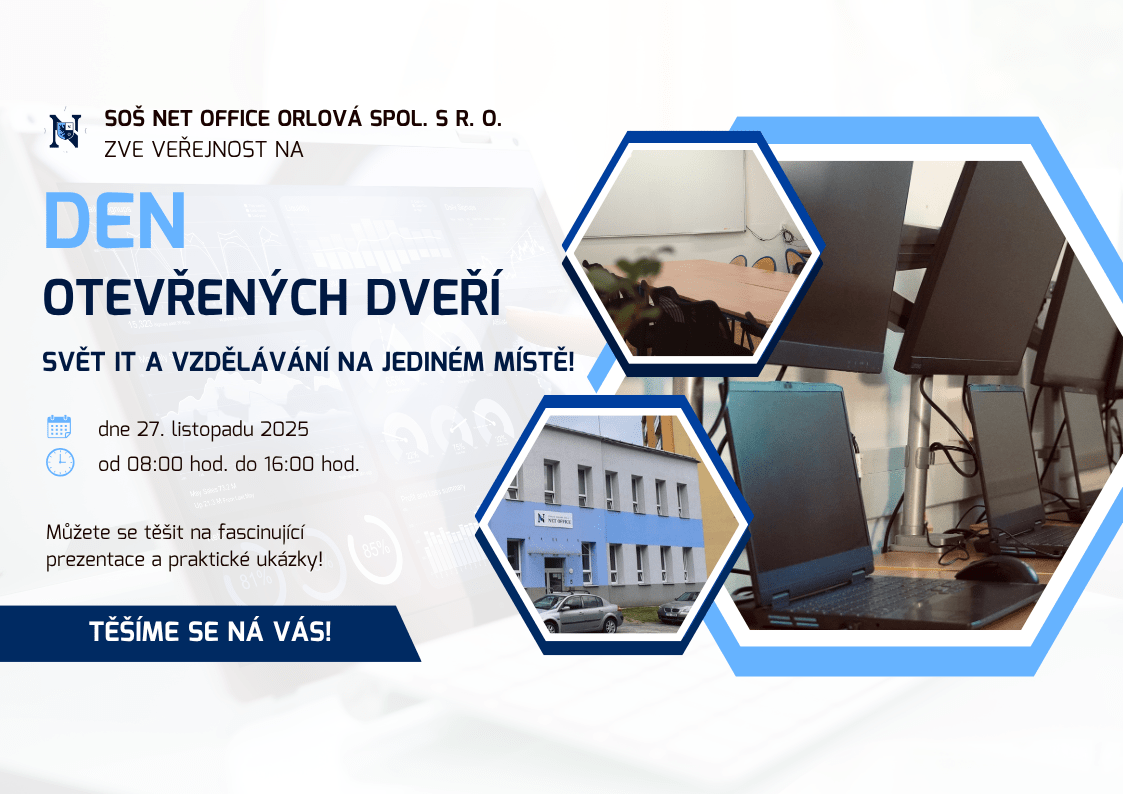 Ve čtvrtek 22. listopadu 2024 se naše Střední odborná škola Net Office Orlová stala hostitelem 16. ročníku Soutěže Nejen v informatice pro žáky základních škol. Akce přilákala 32 soutěžících ze ZŠ z Orlové a okolí, kteří změřili své síly ve třech kategoriích: